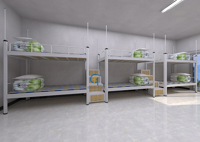 赣州双层铁床采用1.2mm厚度的冷轧钢板加工制造而成,抗压性好,硬度高,床与床的部件接口非常牢固,立柱正面和侧面加有数根加强筋,再加上我们采用卡式衔接技术,床身是无需一颗螺丝衔接的,在柱体打孔,形成倒挂具解卡扣方式,我们运用静电喷塑处理,加强了对金属件表面的保护,这样生产出来双层上下铁床更坚固耐用且不会发出异响和床体摇晃的问题,整张床可承载的重量可达500kg。