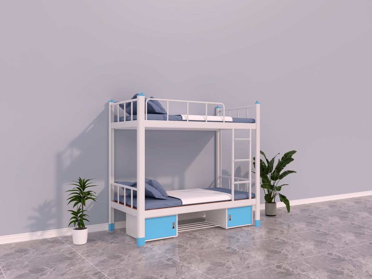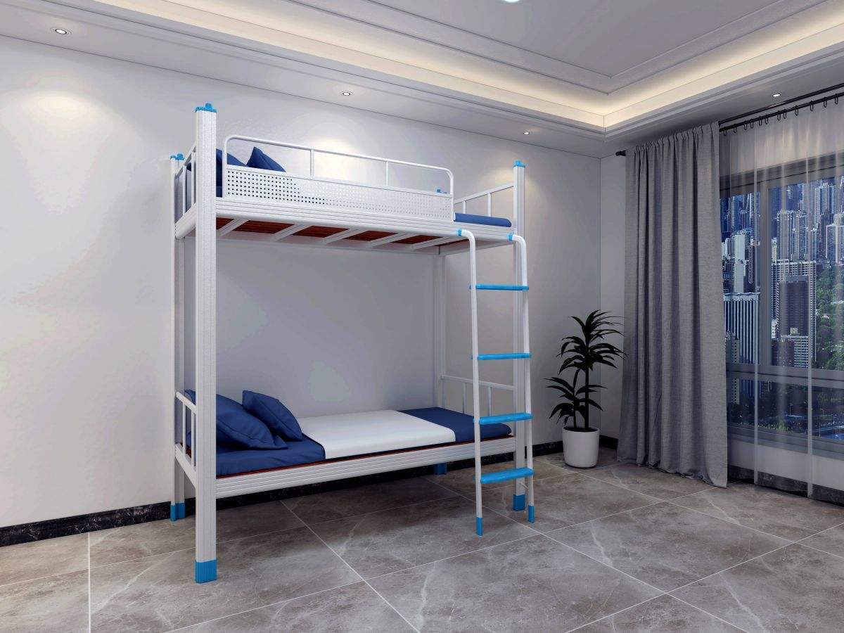 - 双层设计:铁架床通常采用双层设计,这种设计大大增加了床铺的数量,使得相同面积的宿舍可以容纳更多的员工。