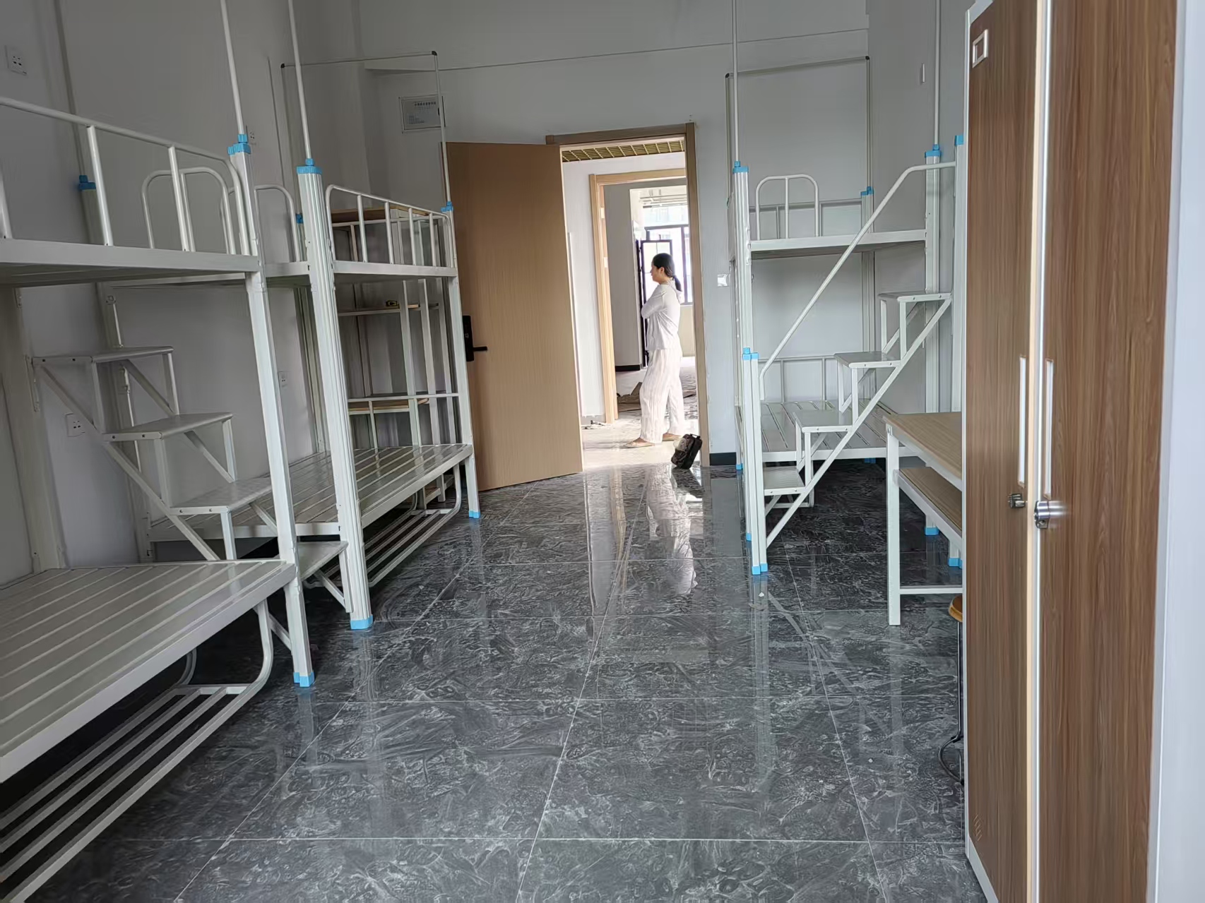 在生产过程中,我们精选SPCC冷轧钢作为床体材质,确保床体坚固耐用,承重能力高达500kg。通过高精度切割、折弯成型和自动化机器焊接,每一款员工宿舍床都展现出平整光滑、无焊疤的完美工艺。这不仅保证了床体的美观,更确保了其长久的使用寿命和安全性。